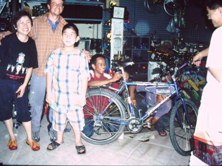 Ich radle in die City Saigons. Welch ein Horror auf den Strassen. Trilliarden von Motobikes und Rollern schwaermen durch die Strassen ohne ersichtliche Ordnung. Solange Du mit dem Strom schwimmst, ist es noch ertraeglich. Doch wehe Du musst linksabbiegen.... Auch hier die uebliche Backpackermeile, im Volksmund hier: Westernstreet. Ausser dem ueblichen Schnickschnack wie Postkarten, Feuerzeuge etc. balancieren hier fliegende Haendler 1,5 m hoch gestapelte Raubkopien von Buechern an den Tischen von Reisenden. Mit Ric, einem Franzosen mit dem ich ein Tisch an einem Strassenrestaurant teile, machen wir eine Art Haendlerroulette, Wir setzen kleine Betraege auf den naechsten Verkaeufer, die mit hoher Schlagzahl unseren Tisch frequentieren. Ob Maennlich oder Weiblich; Buecher oder Feuerzeuge - Blink u.Leuchtarmbaender - Postkarten oder Rosen. Fuer Kleinkind auf dem Arm (welches hier zur Verkaufsfoerderung eingesetz wird), gibts ein Extrabonus.Hier gibts einfach wieder von allem zu viel. Damit unser Zynismus wenigstens etwas Gutes hat, landen unsere "Wetteinnahmen" in die Donationsbox einer Pagode. Doch sollte man doch irgendwie die Haendleranzahl regulieren, denn schoen ist,s fuer keinen. Den armen Haendlern koennen ihre Hoffnungen und Erwartungen nicht erfuellt werden. Was hier angeboten wird, koennen auch nicht hundert mal soviel Touristen kaufen. Und irgendwann wird auch der wohlwollendste Traveller der Angebote ueberdruessig und genervt, weil er nur noch No - nickend seinen Abend verbringt.