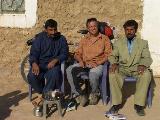 Herzliche Begegnungen im "Schurkenstaat": 1. Raststopp in der Wüste ; 2. ...mit den Schalke-Fanclub "Euphrat-Knappen" in Dair-a-Zur und 3. mit Fischern am Euphrat