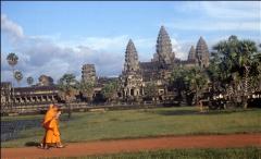 Nachdem ich die Anfaenge des "Wasserfestes" (ein wichtiges mehrtaegiges Ereignis in Kambodscha) mit viel Remmidemmi und Drachenbootrennen am Tonle Sap River in Phnom Penh miterleben durfte, mache ich mich auf nach Suedsuedwest. Nach zwei Tagen erreiche ich das wunderschoen an einem Fluss gelegene Kampot. Netter Ausgangspunkt zu Kuestenorten und dem Bokor Nationalpark, ein Dschungelbewachsenes Gebirge und Rueckzugsgebiet fuer, u. a. ein paar Tiger, Leoparden und Baeren. Panzernashoerner sind leider hier mittlerweile ausgestorben, doch nach meiner unliebsamen Begegnung im nepalesischen Dschungel mit miesgelauntem Nashornbullen ein Grund mehr mal wieder auf Safari zu gehen. Fuer den Folgetag buche ich also eine 10 $ Tour mit Allrad Pickup in den Dschungel. 10 Traveller aus aller Herren Laender verteilen sich dann Morgens in und auf dem Pick Up. Was fuer alle hier ein Aktivposten der Reise ist, ist' s fuer mich eher der "Ruhetag" - kein Fahrradsattel unterm A.... und einfach den Dingen in froher Erwartung entgegenschauen die da kommen. Als erstes kommt beim Aufstieg in die Serpentinen ein heftiger Monsoonplatzregen. Auch wenn ich der Abteilung angehoere, die auf der Ladeflaeche platznahm, lasse ich mir meine Laune nicht verderben. Oben ein weites, lichtes Hochplateau mit einem richtigen Geisterdorf. Durch Rotalgen verfaerbte, fensterlose und leere Gebaeude zeugen von den Glanzzeiten franzoesischer Kolonialzeit hier oben im angenehmen, kuehleren Klima. Ein Kasino, Hotel, Unterkuenfte, selbst eine Kirche ragen in gut 1000 m Hoehe ueber den Kambodschanischen Dschungel. Dazu ein herrlicher Blick auf den Golf von Thailand (der Monsoon macht mittlereile wieder der Sonne Platz). Es folgt der Dschungeltrek. Der Fahrer setzt uns an einem Pfad ab, dem wir einfach folgen sollen. Am unteren Ende (ca. 1 Std.) will er auf uns warten. Alle stehen rum und schauen hilf - und ratlos in den Busch. Ich muss mal dringend und maschiere los. Alles trottet hinter mir her und aufgereiht wie eine Perlenkette ziehen wir durch den Busch. "Was ist mit den Tigern?" stammelt eine Britin hinter mir. "Die greifen immer von hinten an, meistens das letzte Tier einer Herde!" erklaere ich. Alles legt einen Gang zu und zieht unauffaellig an mir vorbei bis ich ploetzlich Letzter bin. Erleichtert pinkel ich im Gestruepp. Anschliessend werden wir noch zu Wasserfaellen kutschiert. Jauchzend springe ich in die Fluten und dusche unter tosenden Wassermassen. Zur Abrundung schippern wir zum Sonnenuntergang auf dem Fluss zurueck nach Kampot. Allerdings war Sonne wegen schwazer Wolken nicht mehr auszumachen und schon entlaed sich der Monsoon wieder mit Urgewalt." Ist euer Boot gesunken?" fragt mich eine Schweizerin zurueck im Guesthouse.