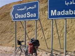 Nach den Orientmetropolen Aleppo und Damaskus haut mich die jordanische Hauptstadt mich nicht mehr vollends von den Socken. Etwa 2,5 Einwohner verteilen sich ueber 19 Huegeln und Taeler. Von den westlichen wohlhabenden Vierteln bis zu den aermeren Arbeitervierteln im Osten. Etwa in der Mitte um die alte Hussein-Moschee das uebliche Gewirr aus lebhaften Souqs und Laeden und meiner netten Unterkunft im "Cliff-Hostel". Am Morgen treffe ich zum Fruehstueck auf einen drahtigen 50er (natuerlich Reiseradler). Ulli aus Aachen, auch unterwegs aus der Tuerkei. Nach einer City-Bus-Tour, die fast ausschliesslich durch den gaehnend langweiligen Westen der Stadt geht, verlassen wir Ammam am naechsten Morgen gemeinsam Richtung Totes Meer. Nach Besuch steinalter Bodenmosaiken in Madaba windet sich die Strasse durch eine atemberaubende ockerfarbende Mondlandschaft, die sich ploetzlich in einem wabbeligen Dunst unter uns verliert. Hier campieren wir hoch ueber dem Abgund zum tiefsten Punkt der Erde, (ca 420 m unter dem Meeresspiegel !) Am noerdlich Ufer sehen wir die Lichter Jerichos und weit hinter dem Westufer erhellt sich der pechschwarze Himmel ueber Jerusalem!