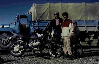 Zwei Tage verbringe ich in der Herberge, bevor ich mich auf den Downhill begebe. Kurz vorm letzten Dorf am Fuße des Passes dann das Debakel. Der Länge nach reißt meine Hinterradfelge auf und blockiert die Bremse. Nachdem ich etwas unsanft über den Lenker absteige, verabschiedet sich mit einem lauten Knall der aufgeblähte Schlauch. Nicht wenige Dorfbewohner springen daraufhin in Deckung. Schöne Bescherung! In dem Dorfhotel treffe ich auf unseren damaligen Fahrer bei der Einreise! Seine beiden Passagiere, eine Honkongchinesin und eine Kanadierin erklären sich einverstanden, mir einen Lift nach Shegar zu geben. Schwein gehabt! Denn ich stehe jetzt auch unter Zeitdruck, mit Jochen, der mich dort erwartet, rechtzeitig die Grenze nach Nepal zu erreichen. Auf der Ladefläche eines Trucks gelangen wir nach Tingri. Dort bringt uns und zwei Franzosen ein Jeep noch am Abend zum Grenzort Zanghmu. Am nächsten Morgen schiebe ich mein Rad wieder über die Freundschaftsbrücke. Grade mal vor drei Wochen starteten wir hier erwartungsfroh und erlebten dann alle Höhen und Tiefen.