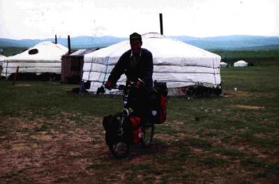 In der mongolischen Hauptstsadt Ulan Bator erwartet mich meine zuvor mit der Transibirischen Eisenbahn angereiste Begleiterin Sabine aus Bamberg. Hier erleben wir zuerst das alljährliche im Juli stattfindende, große Volkssportfest “Naadam”. Ringkämpfe im Stadion, Bogenschießen und ein spektakuläres Pferderennen in der Steppe lassen die Zeiten Dschingis Khans wieder lebendig werden.Von der Hauptststadt brechen wir auf in die endlosen Grassteppen, begegnen überaus gastfreundlichen Nomaden in ihren Jurten, erreichen glasklare Seen, endlose Sanddünen und das mächtige Altaigebirge. Nach ca. 2600 km durch eine der einsamsten Regionen der Erde erreichen wir die Grenze zur russischen Teilrepublik Gorny Altai. Nachdem uns hier am russischen Grenzposten die Einreise verwehrt wurde, blieb uns keine andere Wahl als mit einem Flieger nach Ulan Batar zurückzukehren. Hier trennten sich die Wege von Sabine und mir. Sie trat mit der TranSib die Heimreise an, ich fuhr mit der Bahn lediglich über die Nordgrenze nach Ulan Ude. Von hier radelte ich durch bunte sibirische Herbstwälder und teils entlang dem Baikalsee zum “Paris Sibiriens” Irkutsk. Nach einem kleinen Aufenthalt reiste ich vier Tage und Nächte in der Transsibierischen Eisenbahn durch endlos erscheinende Wälder Russlands bis nach Moskau und nach einem weiteren Stop in dieser interessanten Hauptstsadt per Bus zurück in die Heimat.